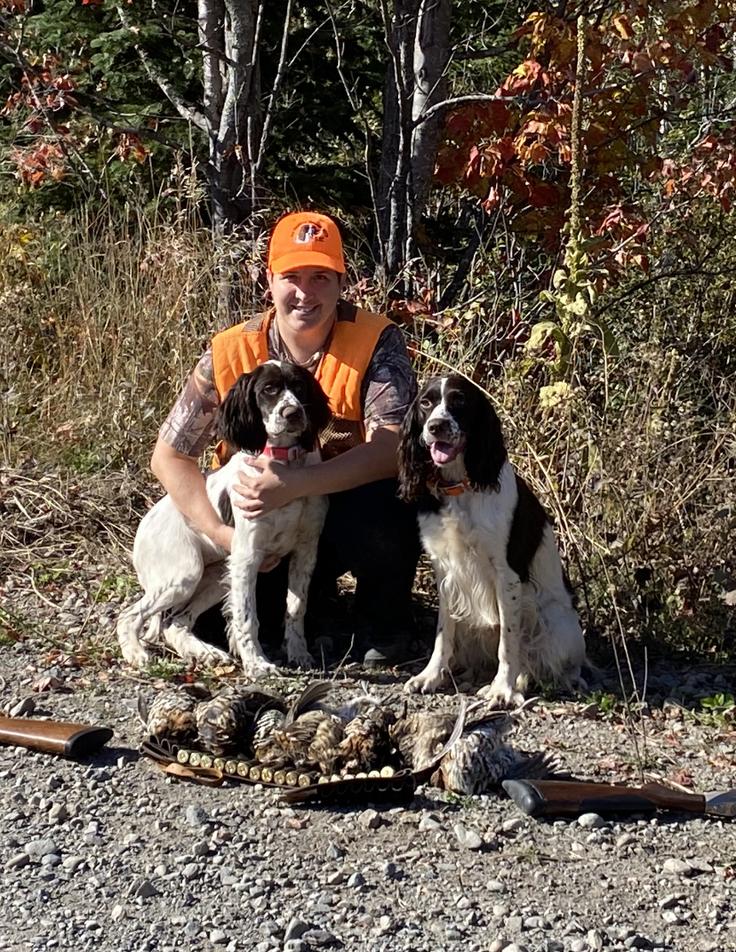 C’est en terrain réel que mon choix s’est arrêté sur l’épagneul français où j’ai pu observer toute la rusticité et la prudence de la race devant l’oiseau sauvage. J’ai vu ces chiens travailler leur nez avec intelligence et précision, arrêter fermement le gibier au bon moment pour ne pas faire lever l’oiseau et nous permettre de tirer le gibier, suivi de la récompense ultime : le rapport à la main. J’ai souvenir de scènes de chasse dignes d’un rêve où le chien track le gibier pendant une longue période, le temps qu’on arrive au chien, la gélinotte étant farouche, piète, ce qui nous emmène à tirer le gibier de loin et parfois, celle-ci se sauve blessée. Sans aucune hésitation, le chien rapporte l’oiseau, peu importe la condition ou le terrain. C’est une race de chien d’arrêt très douée autant pour la chasse à la perdrix (gélinotte huppée, tétras du Canada) que la bécasse, la bécassine et la sauvagine. Le seul inconvénient d’avoir un épagneul français dans le bois est sa capacité spectaculaire à accumuler des tiges de framboisiers et de chardons dans les poils des oreilles et des franges.